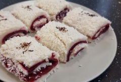 Rernu zagrejte na 180 stepeni. Belo projino i pšenično brašno pomešajte sa praškom za pecivo, uljem, vodom i pivom. Onda posolite pa izlijte u veći pleh da dobijete tanju proju. Pecite proju 15 minuta, u rermi zagrejanoj na 180 stepeni. Propržite brašno na otopljenom maslacu pa dolivajte vodu. Sos začinite solju, biberom i muskatnim orahom i ubacite sitno iseckan mladi luk. Prelijte pečene