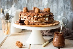 U jednoj posudi umutite jaja, ulje i mleko. U tiganj stavite 4 kore, pa preko njih rendanu šunku, kačkavalj i sir. Prelijte jaja pomešana sa mlekom, pa spojite krajeve
