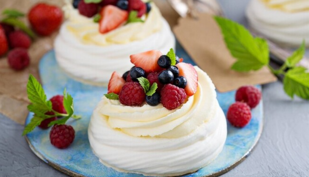 Rernu zagrejte na 120 stepeni. U jednoj velikoj posudi mikserom umutite penasto belanca. Polako dodajte šećer, kašiku po kašiku, uz neprestano mešanje. Umešajte ekstrakt vanile, kukuruzni skrob i sirće, pa polako promešajte dok se svi sastojci ne sjedine. Smesu prebacite u dresir kesu, pa u pleh preko pek-papira oblikujte krugove. Napravite udubljenje u sredini za punjenje. Pecite puslice oko 50 do 60 minuta, u rerni zagrejanoj na 120 stepeni. Šlagom u sredini napravite udubljenje šlagom pa dodajte sveže voće.